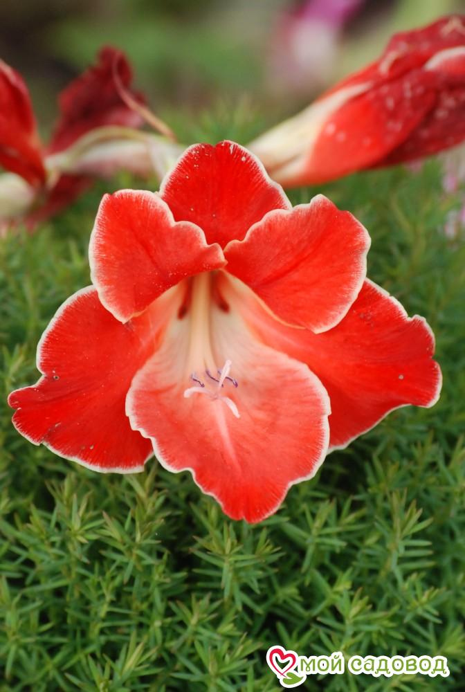 Читать далееСорт гладиолуса Atom карликовый, и потому размер куста не превышает 60 см. Ланцетная мечевидная листва обильно наполняет куст, на фоне которой сильно контрастирую бутоны цвета красной смородины. Что необыкновенно, так это очертание лепестков тончайшей белоснежной линией. За расцветом этих очаровательных цветов Вы сможете наблюдать с приходом июля на протяжении нескольких недель.